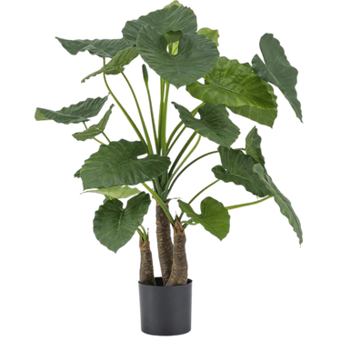 Die Alocasia Calidora stammt ursprünglich aus dem warmen Süden Asiens. Diese Pflanze gedeiht sehr gut unter tropischen Bedingungen. Die künstliche Alocasia Calidora ist eine der größten Alocasia-Kunstpflanzen. Nicht nur in Bezug auf die Höhe, sondern auch die Größe der Blätter machen diese Pflanze sehr beeindruckend. Die Blätter der künstlichen Alocasia Calidora sind spitz, glänzend und von leuchtend grüner Farbe.