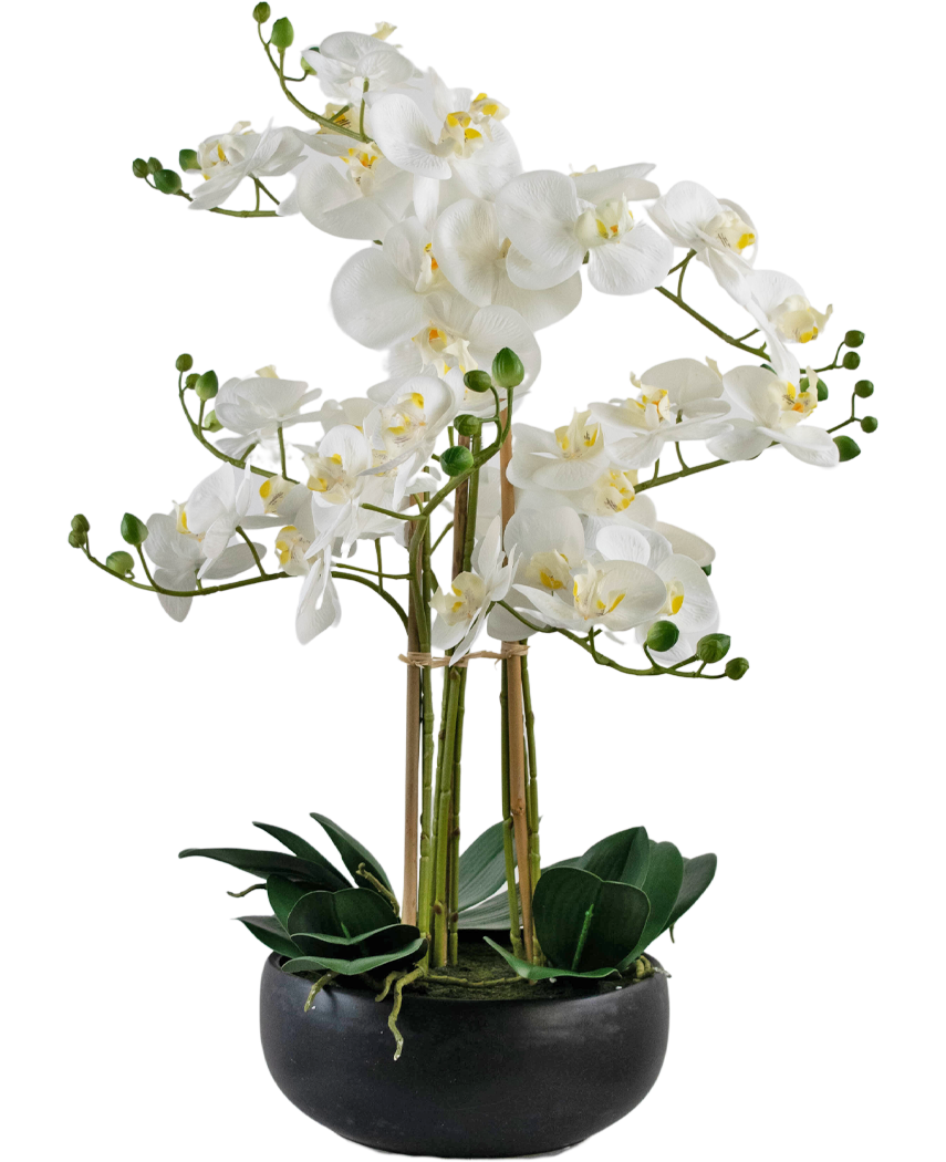 Künstliche Orchidee Real Touch 50 cm weiß im Topf schwarz