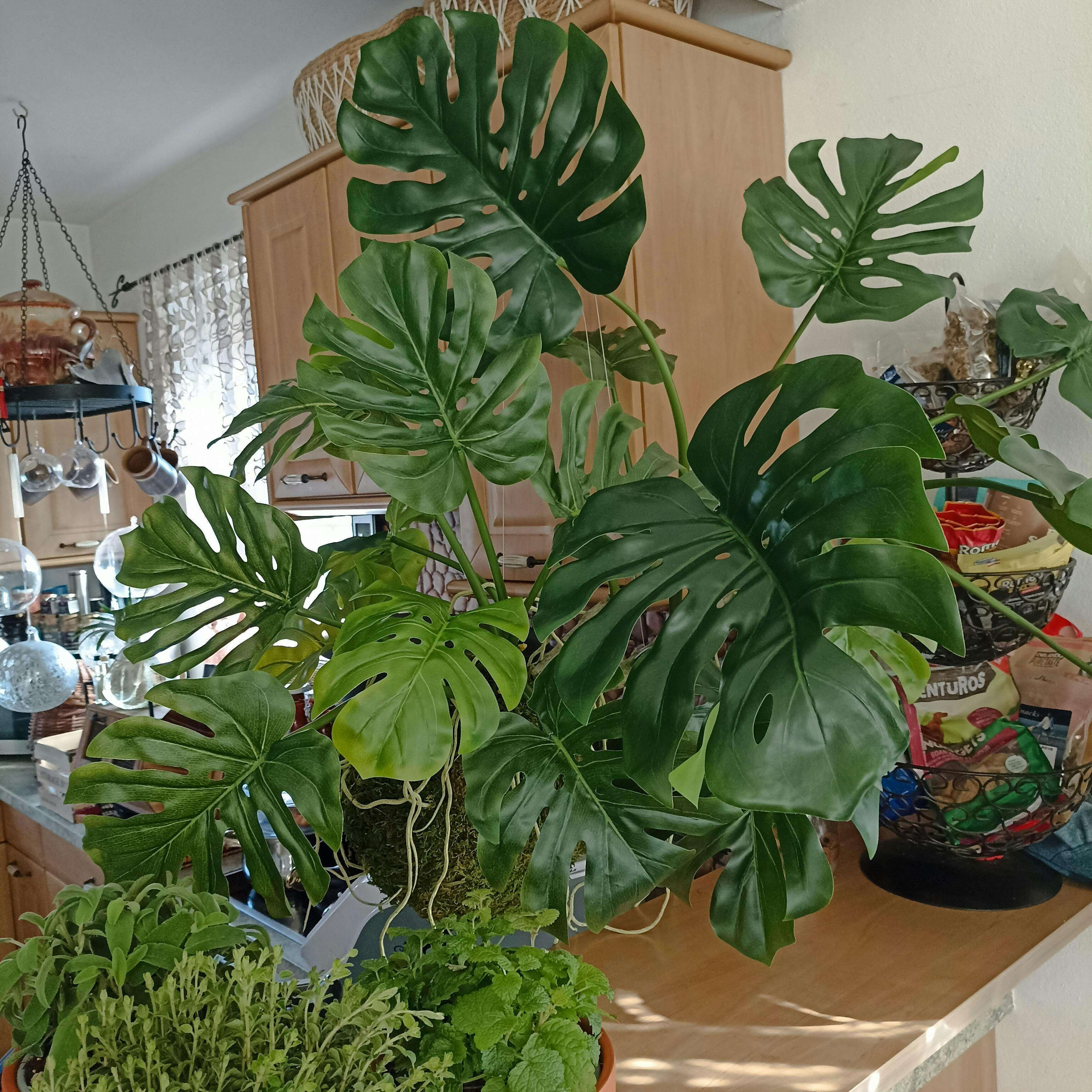 - Realistisches Design: Die großen, grünen Blätter mit Löchern sind so gestaltet, dass sie von einer echten Monstera kaum zu unterscheiden sind.