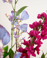 Amethyst Romance ist ein Seidenstrauß, der die Sprache der Zärtlichkeit spricht. Mit einer Palette aus weichen rosa, lila und weißen Farben strahlt dieses Arrangement einen raffinierten Frieden aus, der sich perfekt für diejenigen, die Romantik mit einem modernen Touch lieben, perfekt sind. Die Kombination von blühenden Formen, subtilen Geruchsverbänden und natürlichen Blattstrukturen macht diesen Strauß zu einer zeitlosen dekorativen Aussage.