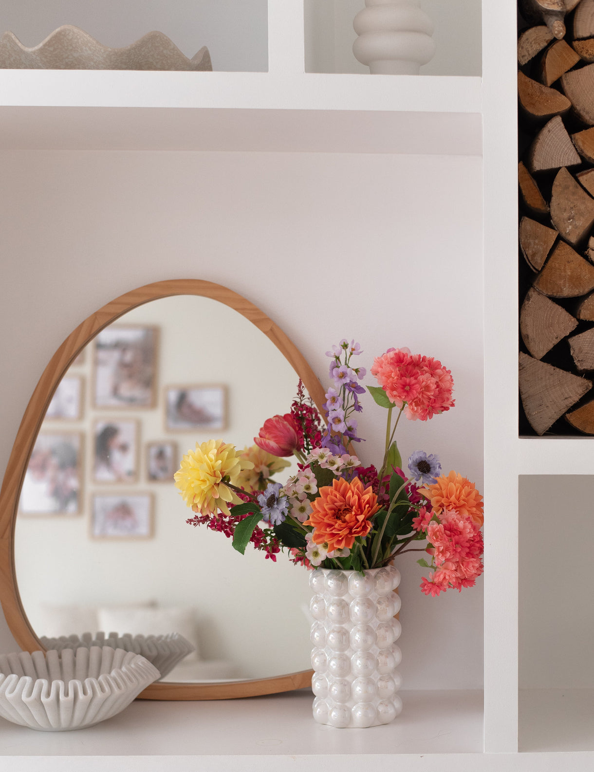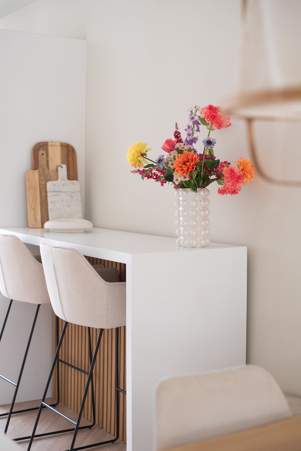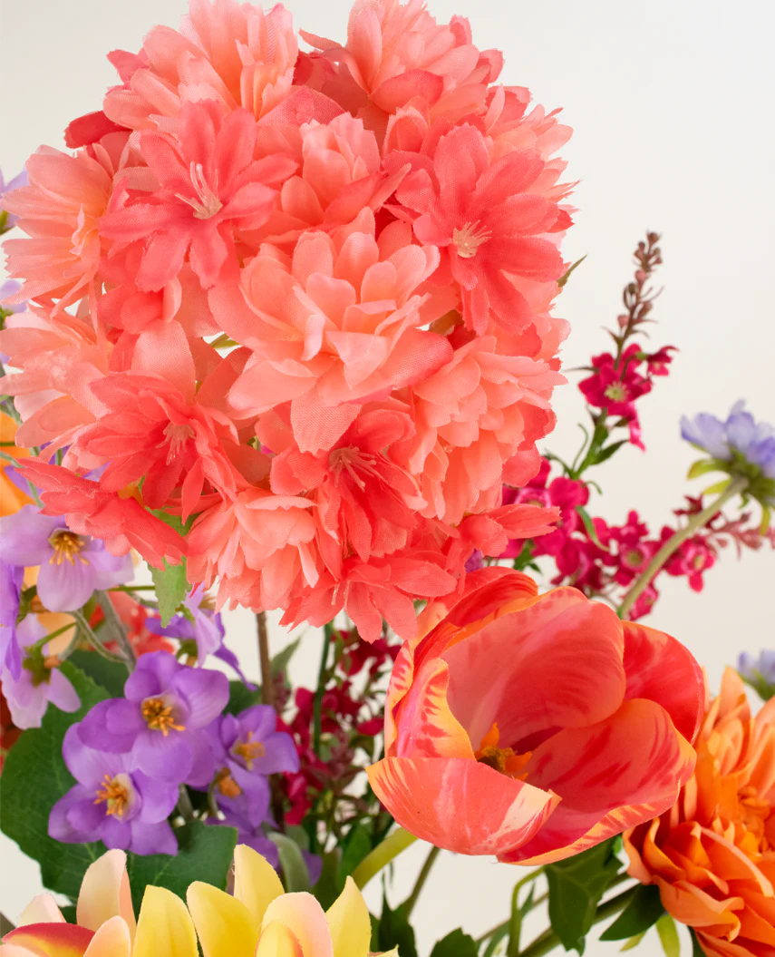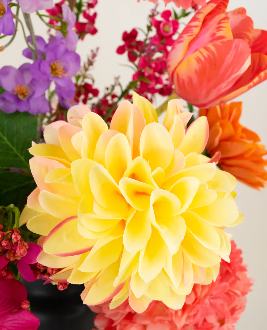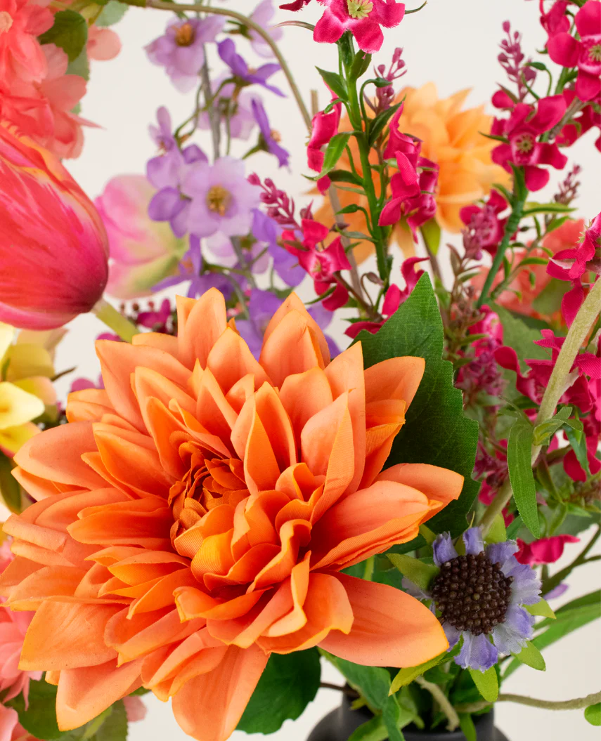Lassen Sie Ihr Interieur mit den Seidenkünstlernblumen -Bouquet Colorburst Blossom zum Leben erweckt, eine auffällige und dauerhafte Anordnung voller Farbe und Eleganz, die aus echten Berührungsblumen mit hoher Qualität besteht, die von Real fast nicht zu unterscheiden sind. Dieses lebhafte Blumenstrauß umfasst eine echte Touch -Lotus -Pfingstrose, eine warme gelbe und orangefarbene Dahlie, samtige weiche Pfingstrosen, eine elegante Schmetterlingszucht in weichen blauen Tönen und eine spielerische französische Tulpe in tiefem Rot. Darüber hinaus geben die Blütenzweige von Kirschblüten einen luftigen Akzent, während der blaue Schabiosa und das stattliche lila Delphinium Tiefe und Höhe liefern....