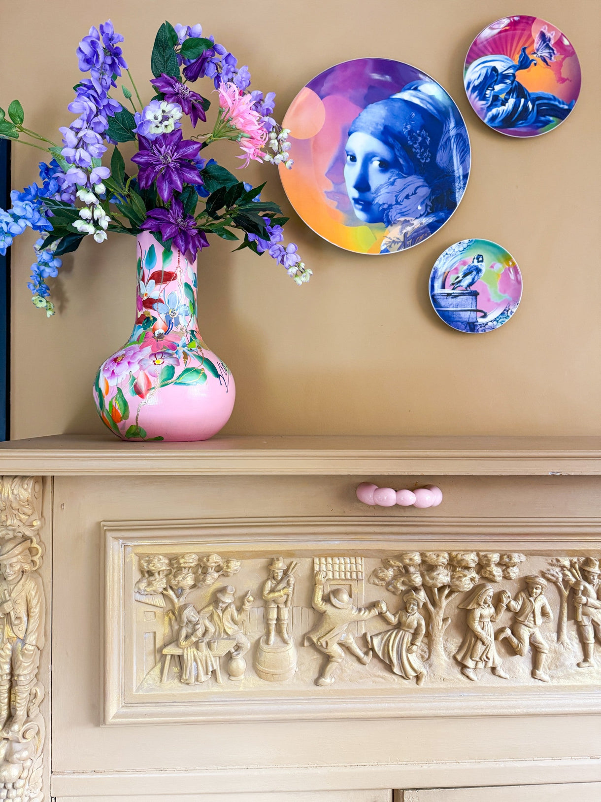 Tief, verträumt und raffiniert - die Seidenstrauß -Indigo -Träume bringen in jedem Raum einen Hauch von Mystik und Frieden. Mit einer Palette aus lila und rosa Farbtönen, anmutigen Linien und spielerisch hängenden Formen erinnert dieser Bouquet an einen schwülen Abendgarten in Blüte. Ein bezauberndes Stück, das Atmosphäre und Eleganz ausstrahlt, ohne überwältigend zu sein.