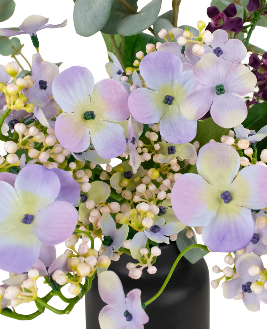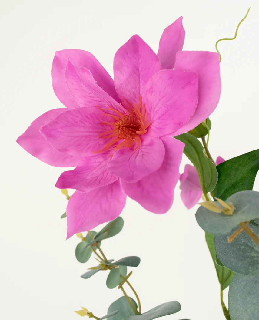 Die Komposition besteht aus lebensechten Blüten mit echtem Touch -Finish, einschließlich der bezaubernden rosa Clematis, einer vollen Pfingstrose, der Verspieltheit von Katzenminenblumen und üppigen Eukalyptuszweigen. Die sorgfältig ausgewählte Mischung aus Strukturen und Farbtönen bringt ein Gefühl der Harmonie, das in dieser Saison nach der Saison weiterhin verzaubert.
