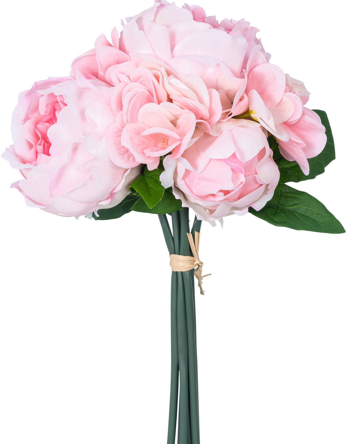 Dieser kleine Strauß besteht aus einer Mischung aus Pfingstrosen, Hortensien und Lotusblüten.