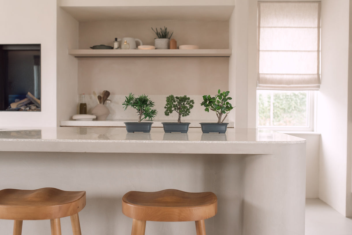 Bringen Sie die natürliche Schönheit eines Bonsai in Ihr Zuhause mit unserer 20 cm hohen künstlichen Bonsai Podocarpus Pflanze. Dieses atemberaubende Kunstwerk wurde sorgfältig entworfen, um die Essenz eines echten Bonsais einzufangen, ohne die damit verbundenen Pflegeanforderungen.
