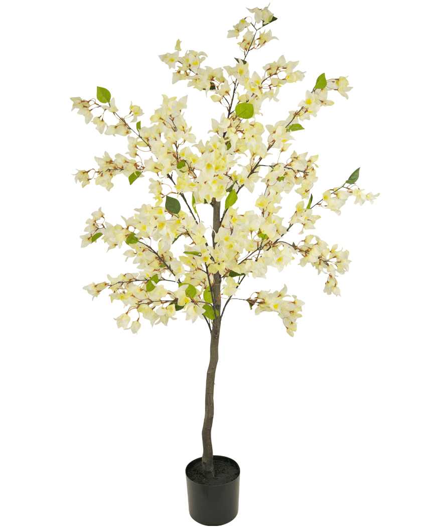 Die Bougainvillea Kunstpflanze mit einer Höhe von 150 cm in strahlendem Weiß ist die perfekte Wahl, um Ihren Wohnraum, Ihr Büro oder jeden anderen Raum auf stilvolle Weise zu verschönern. Diese exquisite Kunstpflanze bietet all die Schönheit einer echten Pflanze, ohne die Mühe der Pflege.