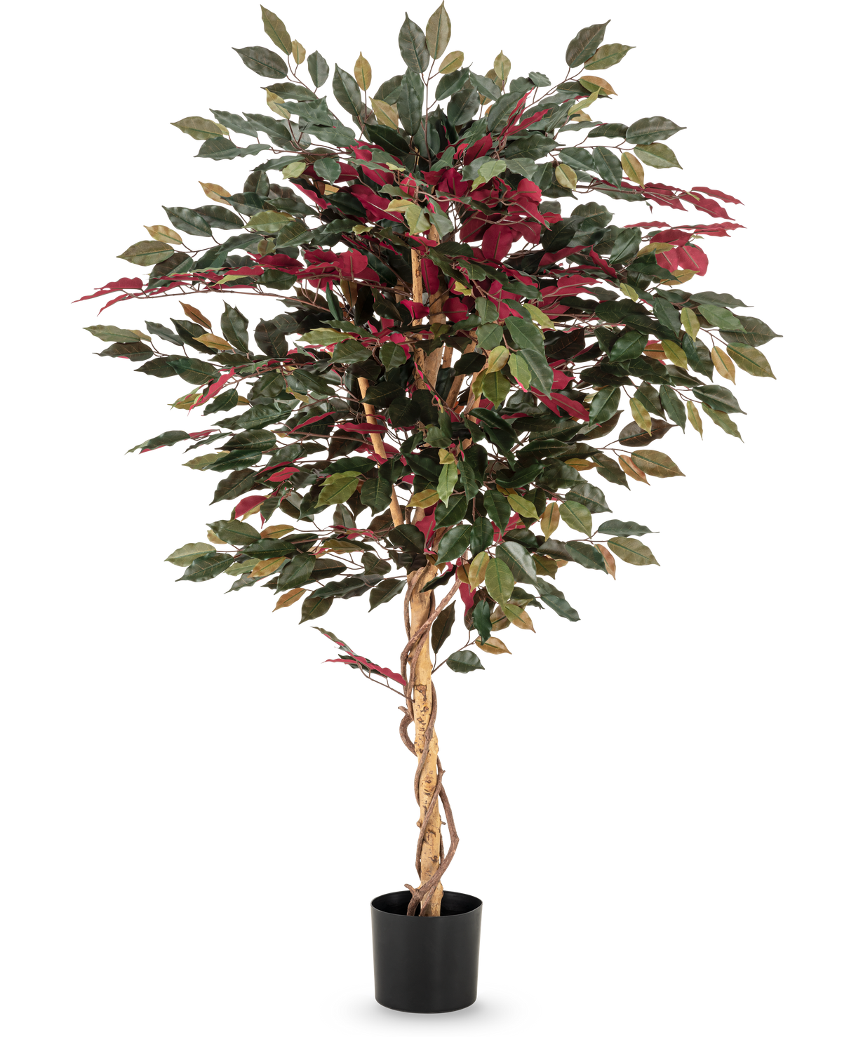 Der ursprünglich aus Afrika stammende Ficus ist eine sehr beliebte Zimmerpflanze, vor allem wegen seiner vielen Sorten und Größen. Dieser Ficus grün/rot bringt wie viele unserer Ficus Atmosphäre in jeden Raum. Diese künstliche Ficus-Pflanze zeichnet sich durch ein volles Bündel von Blättern aus, die in den Farben Grün und Rot variieren, was der Pflanze ein natürliches Aussehen verleiht. Der Ficus hat außerdem einen echten Holzstamm und eignet sich für jeden Innenraum.