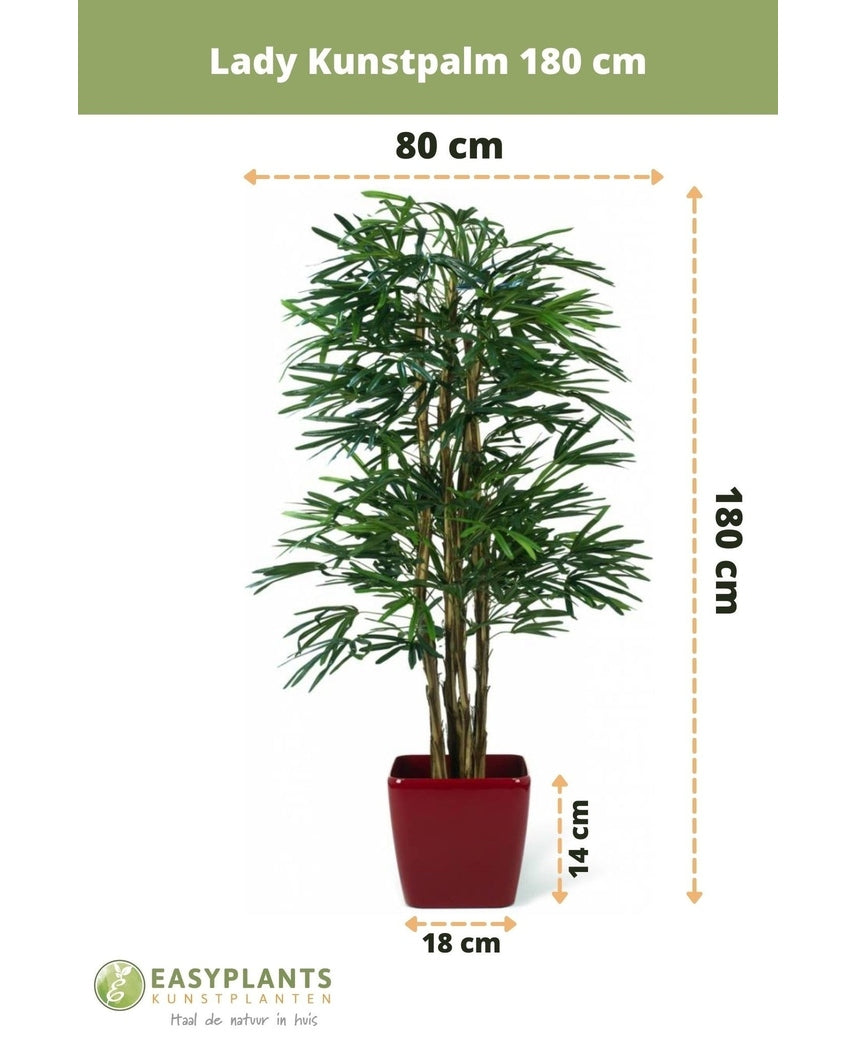 Verleihen Sie Ihrem Raum einen Hauch von tropischem Flair mit unserer Dame künstlichen Palme! Mit einer beeindruckenden Höhe von 180 cm ist diese Kunstpflanze die perfekte Lösung, um eine entspannende und einladende Atmosphäre zu schaffen, ohne sich um Pflege und Wartung kümmern zu müssen.